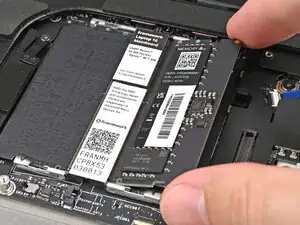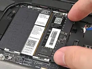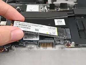Возьмитесь за конец SSD с отверстием для винта и выдвиньте его из разъёма.
