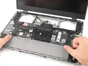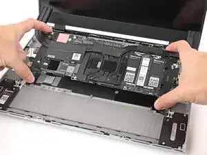 Поднимите среднюю панель пальцами и снимите её с ноутбука.