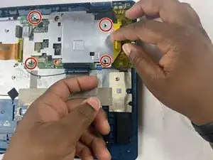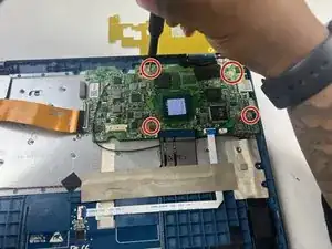Снимите четыре винта Phillips #00 длиной 3,0 мм, расположенных на корпусе материнской платы.