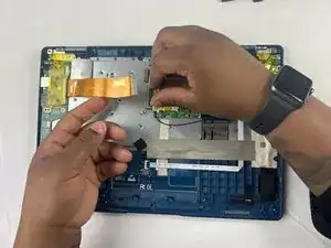 С помощью пальцев откиньте фиксатор разъёма кабеля.