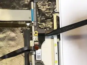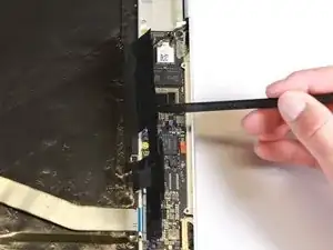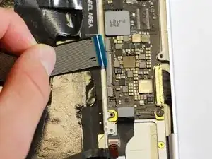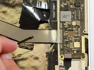 Отключите плоский чёрный кабель от основного компонента, аккуратно выталкивая его из разъёма лопаткой или осторожно вытянув пальцами.