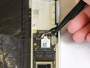 Снимите материнскую плату, аккуратно подняв её из ноутбука с помощью пинцета с тонкими губками.