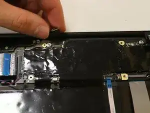 Если они ещё не отпали, снимите маленькие металлические кожухи в верхней части Pixelbook Go.