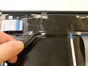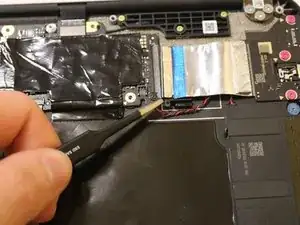 Отсоедините маленький медного цвета кабель от материнской платы. Поскольку кабель очень мал, для этого потребуются тонкогубцы.