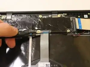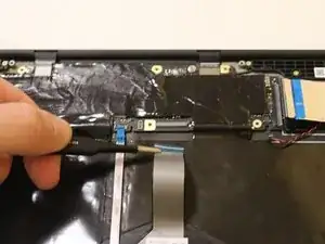 Отсоедините тонкий плоский кабель посередине с помощью монтажной лопатки или аккуратно потяните вручную у места соединения.