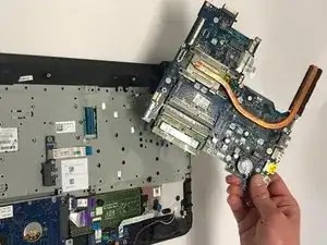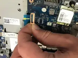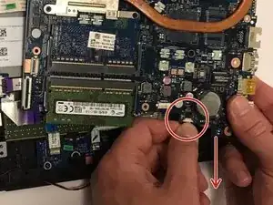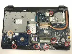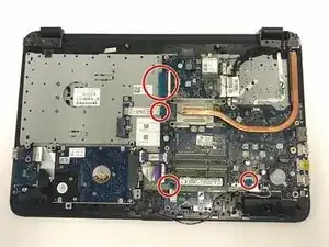 Снимите заднюю крышку ноутбука, открутив видимые винты.