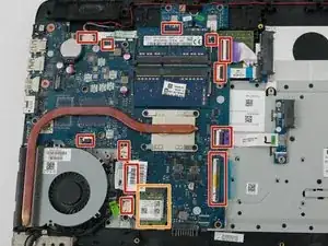 Отключите шлейфы для клавиатуры, дисплея, тачпада и различных системных компонентов.