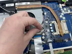 Отвинтите винт 5 мм, удерживающий вентилятор, используя отвертку Phillips #000.
