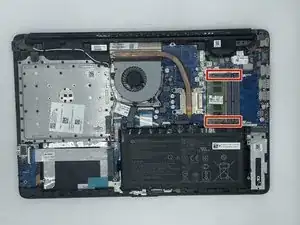 Снимите две длинные резиновые накладки, расположенные вдоль корпуса ноутбука.
