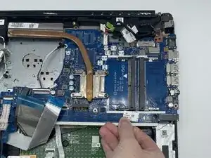 Последний шаг — вынуть материнскую плату из ноутбука. Для этого, начиная снизу, аккуратно освободите плату от точки подключения в правом верхнем углу.