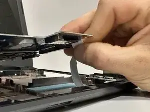 Отключите ленточный кабель клавиатуры.