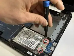 Удалите два винта 5 мм, удерживающие жёсткий диск.