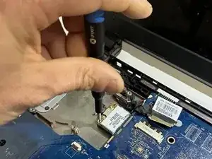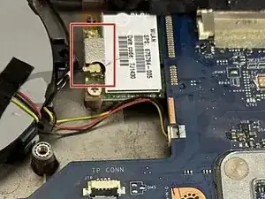 Удалите один винт 3 мм крестовой отвёрткой, крепящий модуль беспроводной связи.