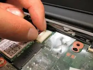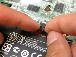Отключите провода батареи от материнской платы, нажав на штекер в направлении от материнской платы.