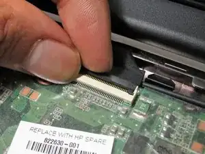 Поднимите левый край вверх и отведите его от основания ноутбука.