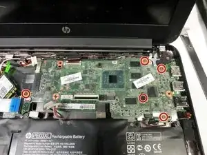 Снимите пять винтов Phillips #1 длиной 4 мм с материнской платы.