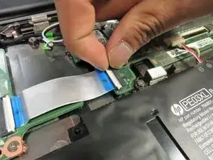 Отключите гибкие шлейфы от материнской платы, аккуратно выдвинув их из гнёзд.