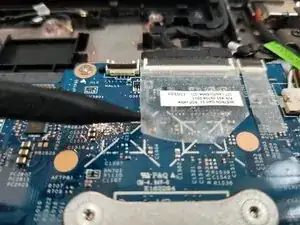 Отсоедините разъём аккумулятора, отодвигая оба конца от материнской платы поочерёдно с помощью заострённого конца лопатки.