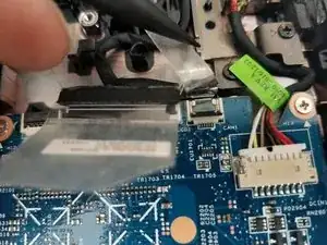 Теперь вы можете извлечь ленточный кабель из материнской платы, осторожно потянув его рукой.