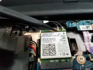 Снимите два провода с верхней части модуля Wi‑Fi, аккуратно отодвинув их от гнёзд, в которые они вставлены, с помощью заострённого конца лопатки.