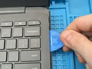 Используйте пластиковый инструмент для вскрытия, чтобы отжать защёлки, удерживающие клавиатуру.