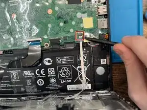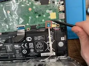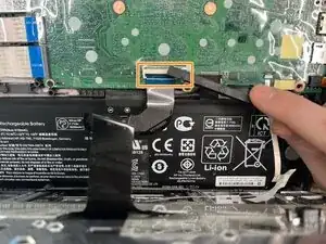 Отогните ленту, закрывающую разъём батареи, и используйте лопатку или ногти, чтобы вытащить разъём.
