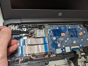 Выверните винт 2,5 мм, крепящий модуль беспроводной связи, с помощью крестовой отвертки Phillips #1.