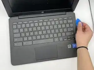 Используйте пластиковую карту для вскрытия iFixit, чтобы поддеть клавиатуру и отделить её от корпуса.