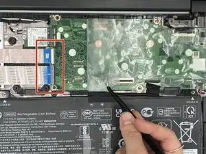 Найдите питательный шлейф, соединяющий батарею с материнской платой.