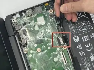 Используйте инструмент для вскрытия iFixit, чтобы приподнять две защёлки на разъёмах с нулевым усилием вставки (ZIF).