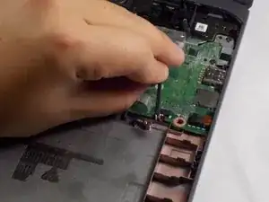 Возьмите чёрный кабель и потяните его от материнской платы.