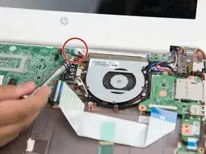 Аккуратно отсоедините разъём на верхней части аккумулятора от материнской платы.
