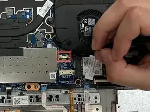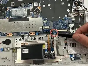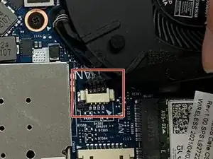 Пластиковой лопаткой отключите кабель питания дисплея от материнской платы.
