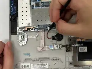 С помощью приспособления для открытия iFixit отключите узел кнопок клика от материнской платы.