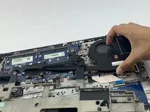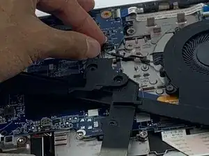 Осторожно извлеките сборку вентилятора и радиатора из ноутбука.