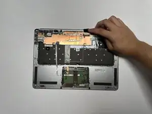 Возьмитесь за эту наклейку, потяните её вверх и снимите — это кабель сенсорной панели.