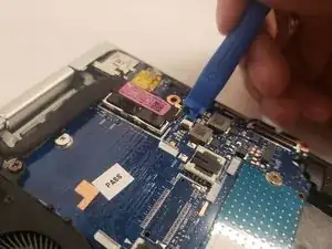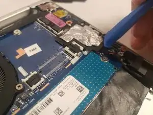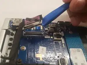 Используйте лопатку, чтобы осторожно нажать с каждой стороны разъёма и высвободить шлейф.