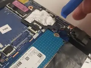 Снимите фольгированный экран с правой стороны материнской платы, аккуратно отогнув его с помощью инструмента для вскрытия.