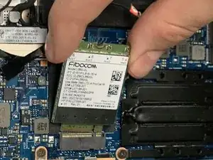 Возьмите плату Wi‑Fi за боковые стороны и сдвиньте её из разъёма, чтобы извлечь.