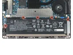 Используйте крестовую отвертку, чтобы выкрутить пять винтов длиной 4,2 мм, крепящих аккумулятор.