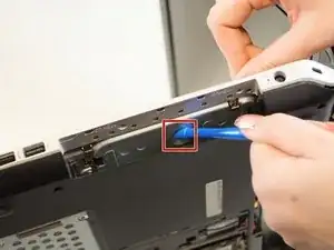 С помощью металлической лопатки приподнимите верхнюю панель ноутбука.