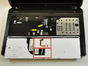 Освободите разъёмы, которые соединяют клавиатуру с ноутбуком.