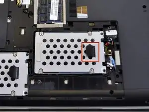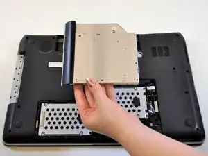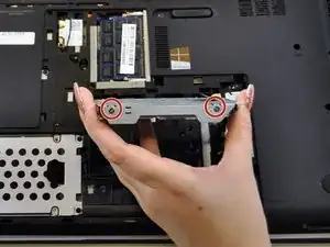 Отвинтите винт Phillips PM2.5×4.0, который прикрепляет оптический привод к ноутбуку.