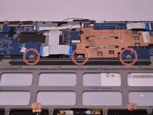 С помощью отвертки Phillips #0 снимите три винта длиной 3,8 мм вдоль края материнской платы.