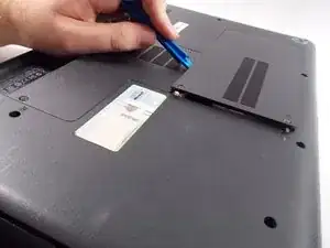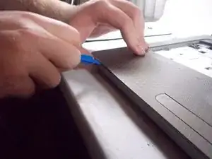 Используйте пластиковой лопаткой, чтобы аккуратно отжать крышку и снять её с ноутбука.