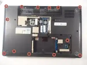 Снимите четыре винта Phillips PM2.5x3 в отсеке для батареи и десять винтов Phillips PM2.5x6.5 на нижней крышке корпуса крестовой отверткой #1.