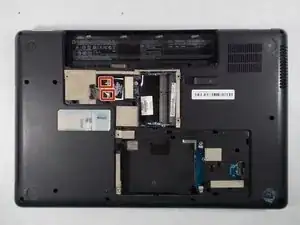 Переверните ноутбук так, чтобы верхняя часть была обращена вверх.