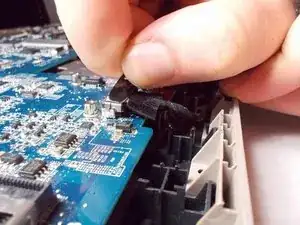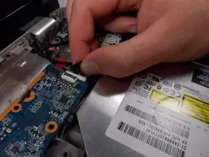 Поднимите защёлку, соединяющую разъём клавиатуры с материнской платой.