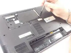 Выкрутите три винта Phillips 3x4, крепящие жёсткий диск, крестовой отверткой #1.