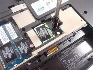 Отвинтите винт Phillips PM2.0×3.0, фиксирующий модуль WLAN в компьютере, крестовой отверткой #0.